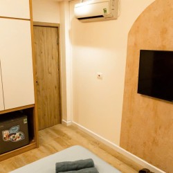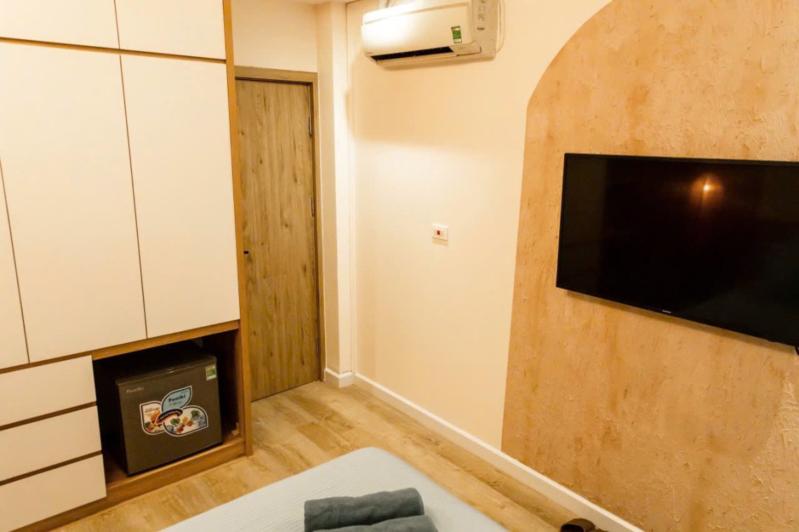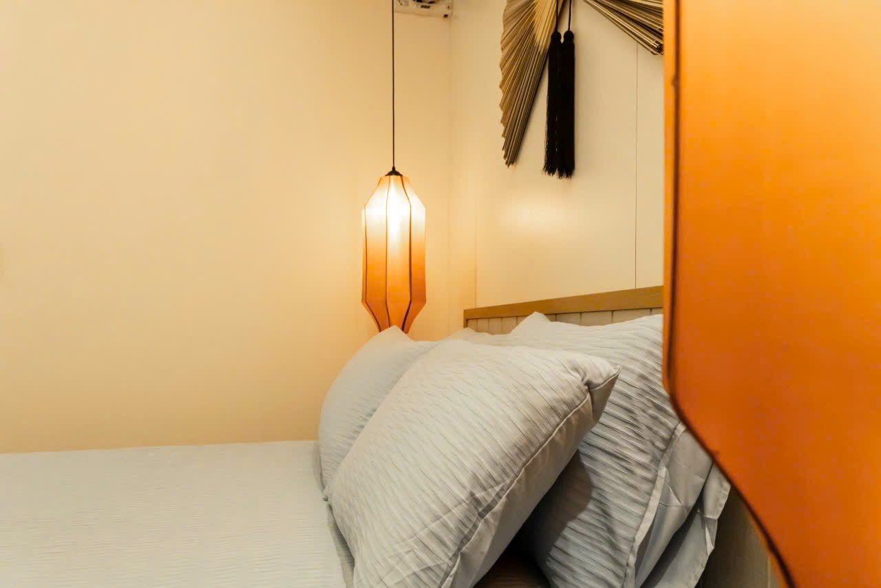 After a day of exploring the bustling streets of the Old Quarter, retreat to the quiet comfort of your Superior Room. Designed as a peaceful sanctuary, this room features warm, intelligent lighting and plush furnishings to help you relax and recharge. Its clever, windowless design ensures an undisturbed night’s sleep, making it the perfect private cocoon for travelers who spend their days out and about.